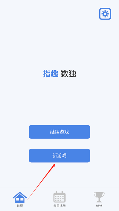 1、下载指趣数独手游打开游戏,点击新游戏;