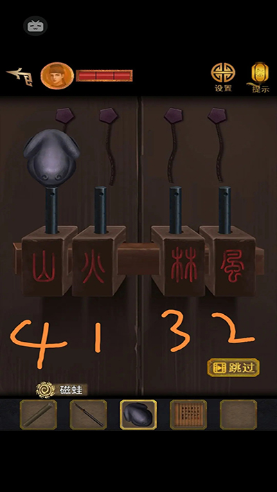 20、带上磁呱,到院子左边水缸旁的门,按竹简上顺序吸几个门栓;