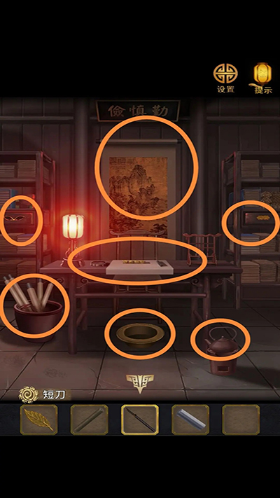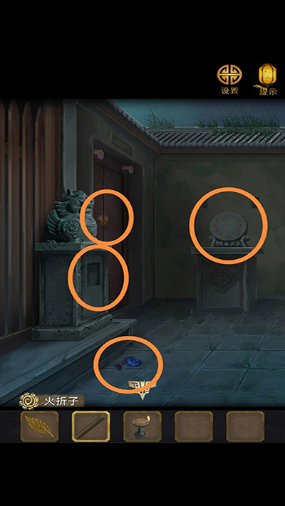 5、院子右边日晷,把吴签安上去,日晷指向生肖,跟大堂右边箱子有点联系,把油灯分别放四个角落,根据不同的影子指向获得密码,打开箱子,发现前几位大理寺官员遇害的证据,捡一下短刀,(要是小祁在我还得自己捡刀子用嘛!)