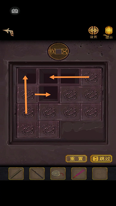 15、右边墙火把下,铜钱安上,开启华容道,获得磁蛙,这时候不要去开门,因为差一个线索,直接开会触发bug;