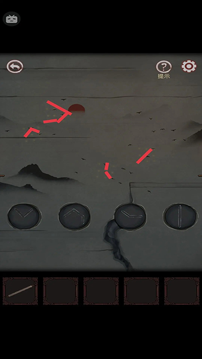 5、来到福字房间,右边墙上机关正好缺这个部件,按上启动机关,根据之前醒来地方水流方向摆放这个机关;
