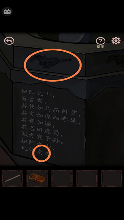 8、点击左边的房子,用木炭涂在门上,获得开门的线索;
