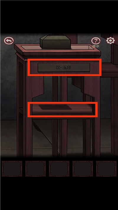 4、左边箱子上有符号刻着,跟之前门里走廊顶的符号很像,组合起来便是密码,开箱获得火柴和部件;