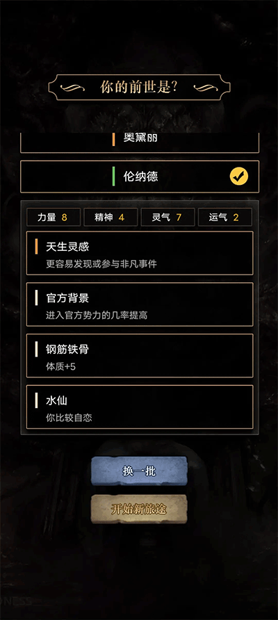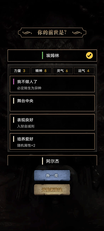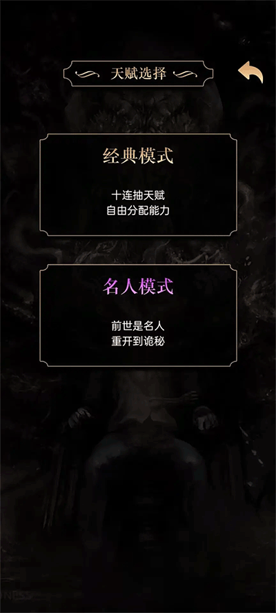 经典模式会重开类文字游戏的传统玩法,选择天赋,加点后即可重新开始游戏。
