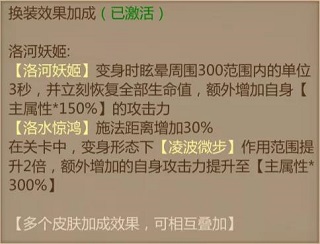 我们先来看一下甄宓的换装醉花阴带来的皮肤加成: