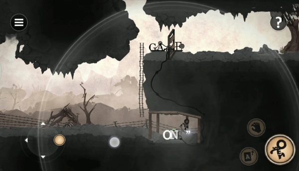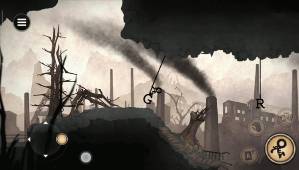 13、跳下来向前跑跳过三个柱子,向前跳到梯子上,到断头台前有个单词CHOP砍,左边的闸按下铡刀就会升起,跳下悬崖后又会出现怪物,向前跑会不断落下怪物,跑到最后边的悬崖下会出现一个发着光的人在空中抵抗怪物,经过两轮对抗字母人HERO脚下的石块会碎落掉下就过关了。