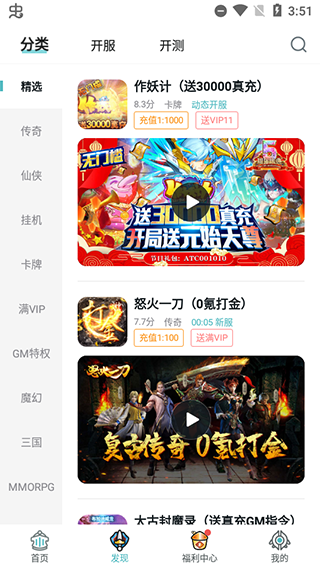 平台内有上千款热门BT手游,品类包括仙侠、MMO、策略、卡牌、传奇等。游戏详情页附有下载、福利活动、开服开测、礼包领取、游戏点评等功能。