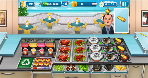2、精心设计12个餐厅,升级装潢由你做主,对了,别忘了升级你的餐厅还有烹饪设备哦,操作简单,画面流畅。