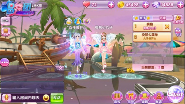 K歌玩法中,并不是传统的单人练歌房,是可以8个人!!!一起游戏的哦~进入游戏房间的小伙伴可以自由点歌,系统会根据点歌的先后排麦,按顺序安排大家一一演唱哦!在唱歌的同时还可以根据系统的自己喜好调节歌曲的混响效果;如果不想唱了想休息,也可以直接切歌,或是开启【伴唱】功能大家一起听歌吹水,K歌交友两不误!是不是体验堪比KTV呀!