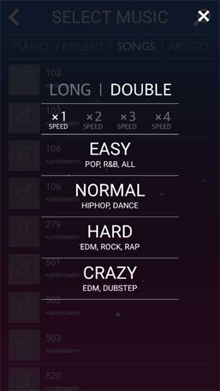 5、只需要根据歌曲的难易程度来决定玩家想要体验哪种模式。