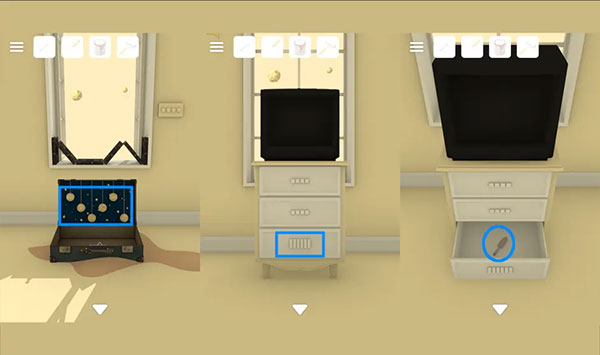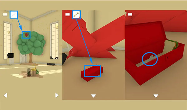 针戳树上气球,得钥匙,开红箱子,得扳手。