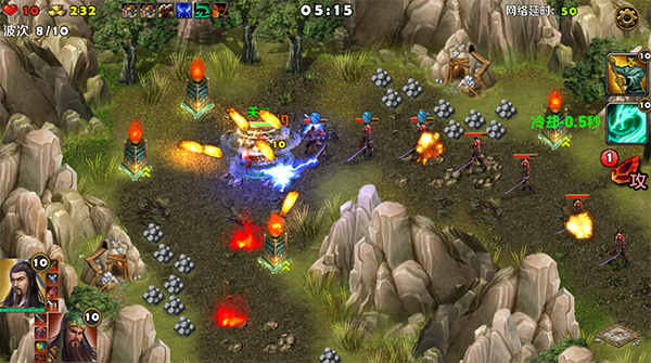 每一个关卡都需要您开动脑筋,利用各类防御塔、英雄卡以及战术技能卡的组合,阻击一波又一波敌兵。敌军首领拥有各种技能,更是增添了游戏的惊险刺激。BOSS、陷阱、救援、发兵、偷袭,对攻! 每分每秒都在挑战您的策略和操作。