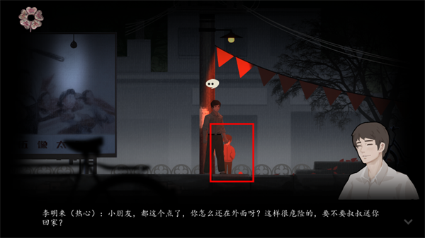 3、往前走,和门卫老赵进行互动后去找小男孩要红包壳