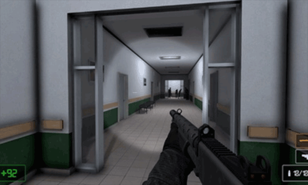 4、然后我们推开门就可以看到非常多丧尸,我们这时候就可以通过无限子弹,轻松消灭,继续探索了。
