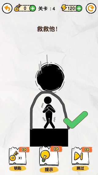 1、以火柴人为主题的画线救援游戏,打开脑洞救救火柴人吧2、非常新颖的关卡设计,每一道关卡都极具趣味性和挑战性