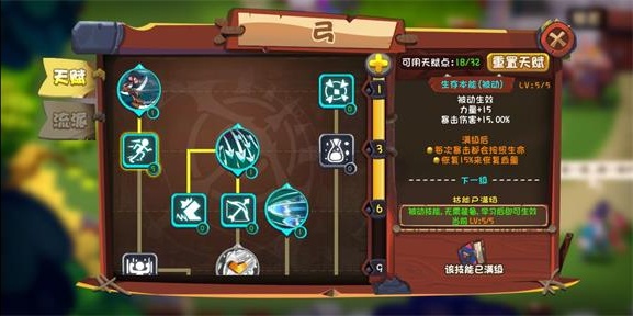 先加精通等级,当精通等级升级到1级后,能选择升级同一水平线的2个技能,同样当天赋等级升级到3、6、9、12、15级的时候,都能升级对应同一水平线的技能。