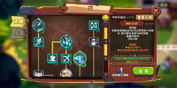 输出之王:箭雨看情况点,5生存本能,5追魂弹(输出神技),可以考虑点1箭雨(用霸体)。