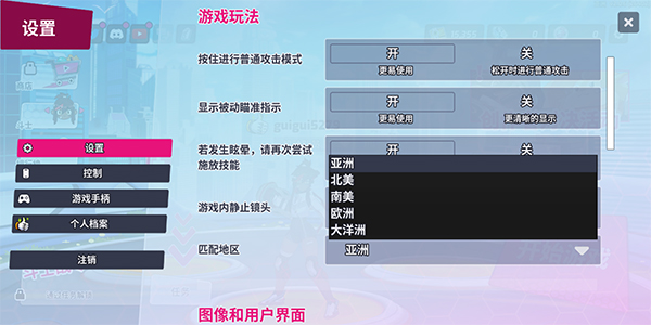 2、之后往下滑动,在游戏玩法栏目下,找到匹配地区选项并根据自己需求进行切换即可