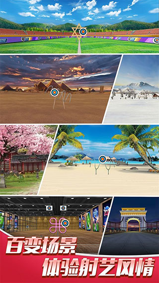 3、富的射箭场景:森林,射箭场,沙滩,金字塔,冰岛等等