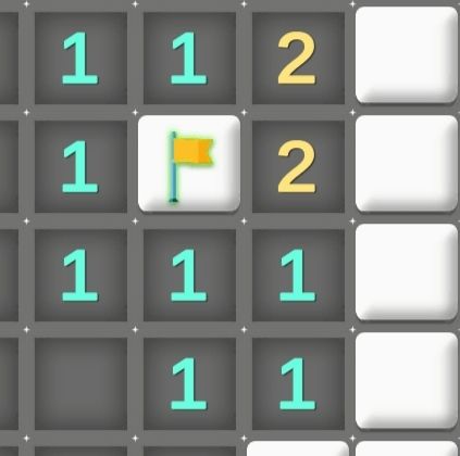 数字:假设数字为1,则在其3x3的范围内有一个地雷,以此推类,最高数字为8。