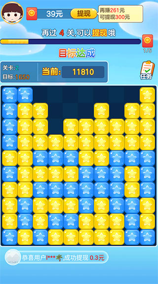 1.每天都有不同的红包任务,更多的游戏模式和简单的动作等着玩家。2.一种多年龄类型的游戏,玩家可以使用你的技能来消除更多的方块。