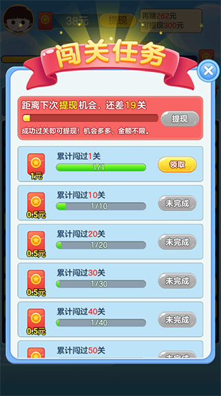 游戏每天都有不同的红包任务,更多的游戏模式和简单的动作等着玩家。记得每天都有闯关任务哦