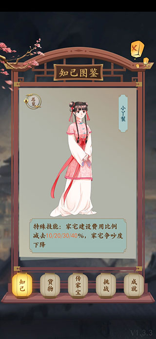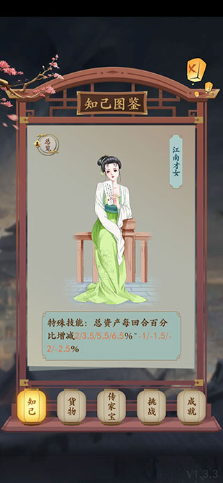 新手可以通过完成任务和经营产业积累资金,逐步拓展生意。与知己互动需要达成羁绊才能解锁更多技能,每个知己的结婚条件也不同,有的需要特定年龄,有的则要看资产和建筑等级。游戏画面古风浓郁,场景设计精美,玩法多样,既有经营又有商贸策略。