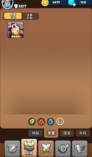 玩家在军营可以看到自己已拥有的士兵和英雄;