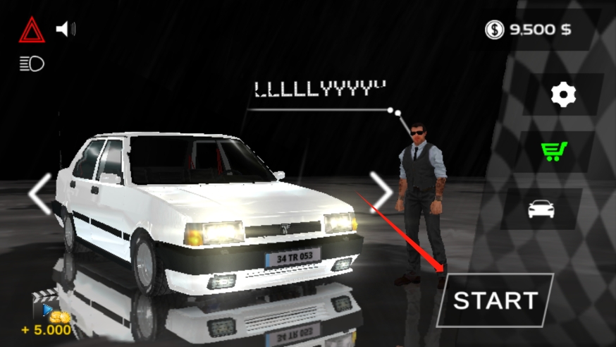 4、玩家可以先选择这这辆白色的车,不需要购买,然后点击【start】;
