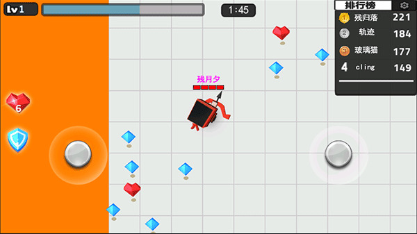 3、对局内会随机刷新道具,拾取“爱心”可以使角色生命值回满,“护盾”道具则可以抵挡敌方的3次攻击;
