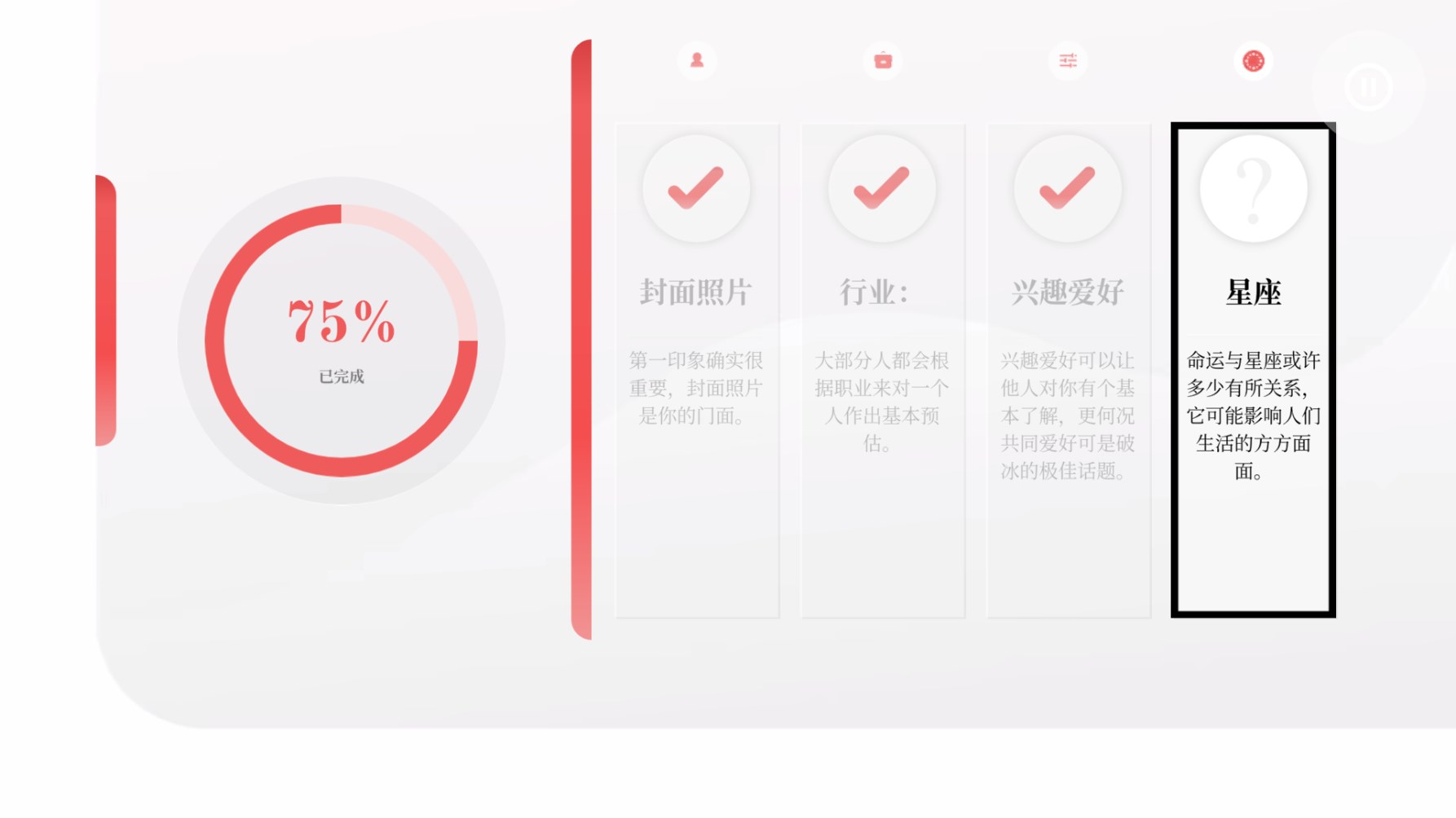 玩家在开始约会时可以设定自己的人物性格和爱好,而不管怎么设定,己方的选项可能会变,但是对面的女方的观点和立场始终是不变的,这也是我说的,让游戏有了背板的可能。
