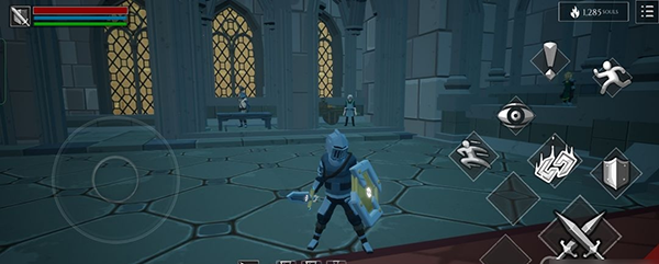 找到探索模式,进入第一关。关卡是不固定的,由以下几种房间随机分布。魂的获取方式就是,击杀小兵,并且在不死的情况下找到祭坛回去。或者用在商人那里买到的归梦水回去。如果死掉了,所获的东西会掉在一个小兵身上,小兵会发着蓝光。击杀掉发着光的小兵,再用祭坛或是药水回去。