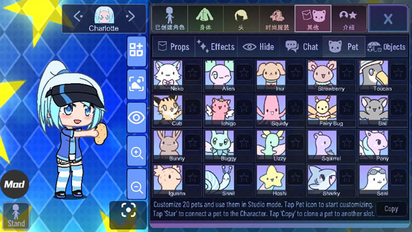 加查之星是非常火爆的加查系列游戏之一,游戏整体以卡通风格为主,进入游戏后,玩家可以充分发挥自己的想象力创建不同的场景、角色、搭配各种各样的服饰和捏出不同的脸型,自由度很高,同时游戏中还设有非常丰富的养成系统,玩家可以操控由自己一手打造的角色开启精彩的闯关冒险之旅。除了核心的换装玩法之外,加查之星中还设置了其它的趣味玩法,例如跳舞类的小游戏,刷怪的回合制战斗玩法,人物数值养成等,极大的增强了游戏的可玩性。下面小编给大家带来的是加查之星凹凸世界版本,这个版本中加入了大量新的衣服和配饰币,有需要的小伙伴赶紧来下载吧。