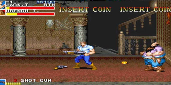 这也是关键的一关,前因是最后一关,总关尾(大恐龙)不太好打(对于一般高手来说,不过,像我这样的,有没有无敌枪,打它都可以不死命)。这关的无敌枪,两个字,好打,在一开始处,把两个小恐龙和两个狮子和若干个刀客解决后,后面会有三个小猴子,其中一个身上带一把机枪(应该是最下面的那个),你(站在屏幕下方,就是最下面猴子出来的那条线)一直往前跑,看见三个猴子出来后,你把最下面那个猴子打死(注意:不能用脚踢死或者其它的方法弄死,一定在猴子出来后,停下,用一套拳头打死,必须用拳打死,否则不给无敌枪),死后,他会给一颗手雷和一把机枪(手雷和机枪在一起),你打死猴子后,马上(快速度)把地上的手雷拿起(因为机枪和手雷在一起,都是先拿手雷,后拿机枪),马上扔掉,紧接着再拿机枪(注意,在打猴子和拿手雷拿枪时,一定不可以放导弹,如果放了,不给无敌,可别怪我)95%以上,都给无敌枪。好了,拿好无敌枪,只要别叫敌人给你打化了,拿着无敌枪去打总关头的BOSS,剩下来的就不用我说了,应该可以顺利的爆机(如果拿无敌枪都打不过去,我就晕死了,也说明你个人太笨)。