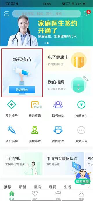点击首页【新冠疫苗预约】,进入APP首页