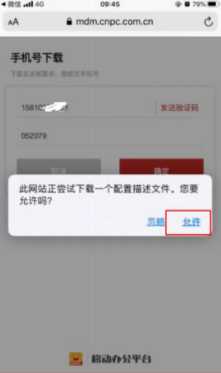弹出提示“此网站正尝试下载一个配置描述文件。您要允许吗?”,点击【允许】并安装。