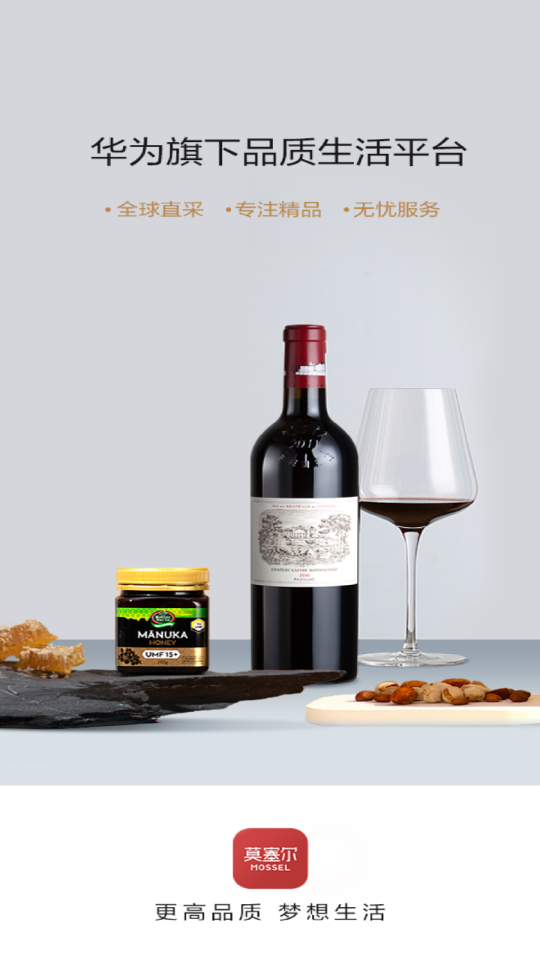 莫塞尔商城app是华为旗下的品质生活平台,一款专为用户提供购物体验的软件,依托华为全球供应链资源,通过全球原产地直采、全供应链管控模式,逐本溯源、苛求品质,提供全球甄选的数百款优质产品,产品品类包括:葡萄酒、烈酒、牛肉、大米、橄榄油、海产品、坚果、茶叶、蜂蜜等,可以满足用户的不同需求,让您无忧放心购。