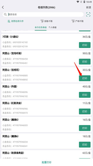 1、打印烟草价签的方法很简单,确定好价格后,点击打印的烟草;