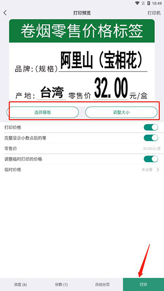 烟草价签管理打印软件最大的亮点就是提供了便捷的价格打印服务,打开蓝牙连接打印机,选择想要打印的卷烟,选择模板、大小,一键点击打印,就能快速获得价格标签。而且它有多种模板可以选择。