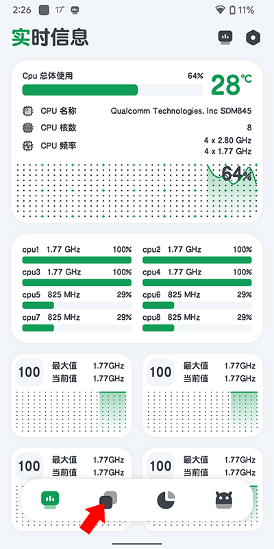 cpu监测是一款专业的cpu性能监测工具,应用ui设计十分精致且简洁,并且本身体积也较为小巧,让用户可以获得非常不错的使用体验,在功能方面除了可以同时监测 CPU 的温度和频率信息,并且对 CPU 温度和频率的历史信息就行统计外,还提供了一键加速、内存小部件、CPU 小部件、电池小部件、桌面悬浮窗、状态栏悬浮窗、高温警报等诸多实用小工具,让用户更加方便的监测各种信息。喜欢的用户们不容错过,快来本站下载开始使用吧。