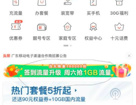 3、周三周六抢流量,大家需要蹲点,错过时间可能得再等下个时间段开始。进入软件首页点击页面中间轮播图中周六抢流量