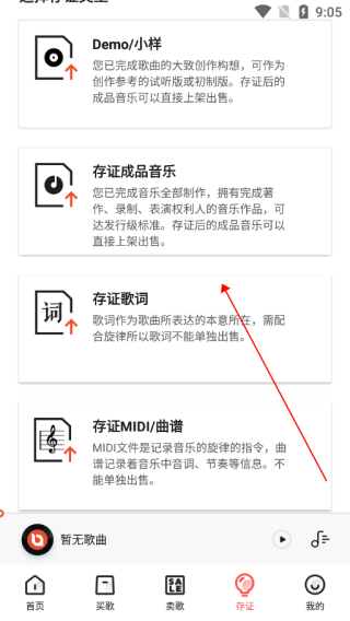 2、可上传Demo/小样、存证成品音乐、存证歌词、存证MIDI/曲谱