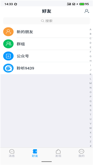 2、切换到【好友】页面就可以查看自己的全部好友了,并且上方还有新朋友和群组两个入口。