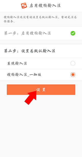 3、之后点击搜狗输入法一加版进入其设置引导界面,点击下方设置