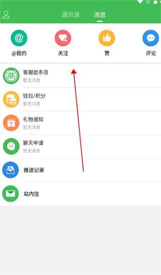 4、点击“消息”将看到软件内各种通知,点击通讯录还可以进行加好友等操作。