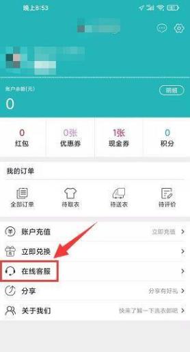在我的界面,单击在线客服选项。