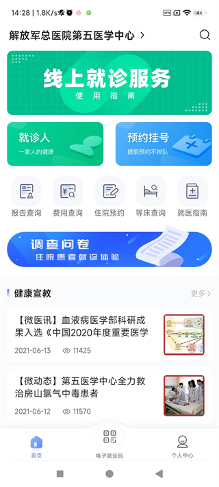解放军总医院第五医学中心app是一款非常全面的医院线上平台,也可以叫做“中国人民解放军总医院第五医学中心”,软件操作界面非常简洁,清新的UI风格,用户使用起来堪称得心应手。现阶段,解放军总医院第五医学中心app为大家提供了诸多实用的功能,例如:手机预约挂号、线上问诊、网上缴费、报告查看等诸多功能,有了它,在家即可进行挂号预约的操作,让看病更加的简单方便哦!当然,如果用户想体验平台的全部功能,则是需要进行实名注册认证的,登录绑定信息成功后,这里可以更好的展示您的信息,用户也是无需担心信息泄露的问题,解放军总医院第五医学中心app对所有实名注册的用户信息都是严格保密的,有需要的朋友们快快前来下载体验一番吧!