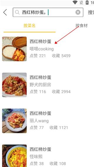 2、在搜索栏中输入你想学习的菜谱(西红柿炒蛋)