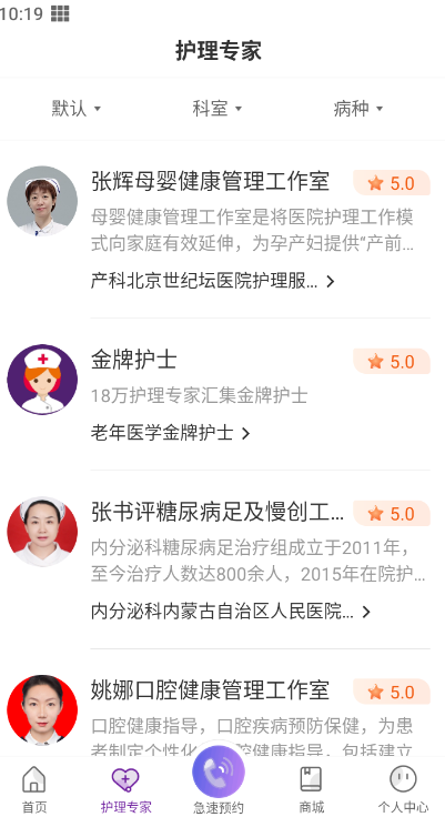 4、在护理专家里你还可以自己挑选喜欢的护士为你服务;