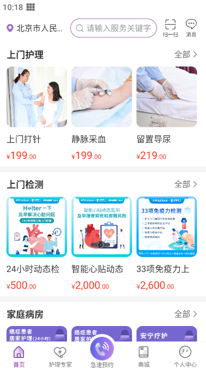3、首页有各种护理服务,用户可以根据自己的需求进行选择;
